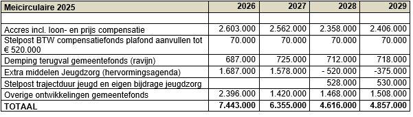 Kadernota 2026, Correctie onttrekking algemene reserve |